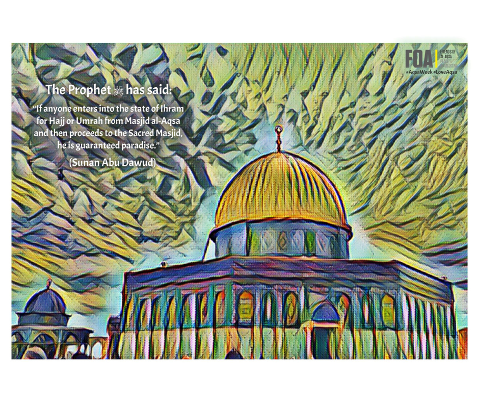 This year, Aqsa week runs from 11 - 23 January 2026. During this crucial week we encourage everyone to try and go the extra mile in their efforts to help raise awareness of Palestine and Masjid Al-Aqsa using #LoveAqsa. Read more about Aqsa Week.